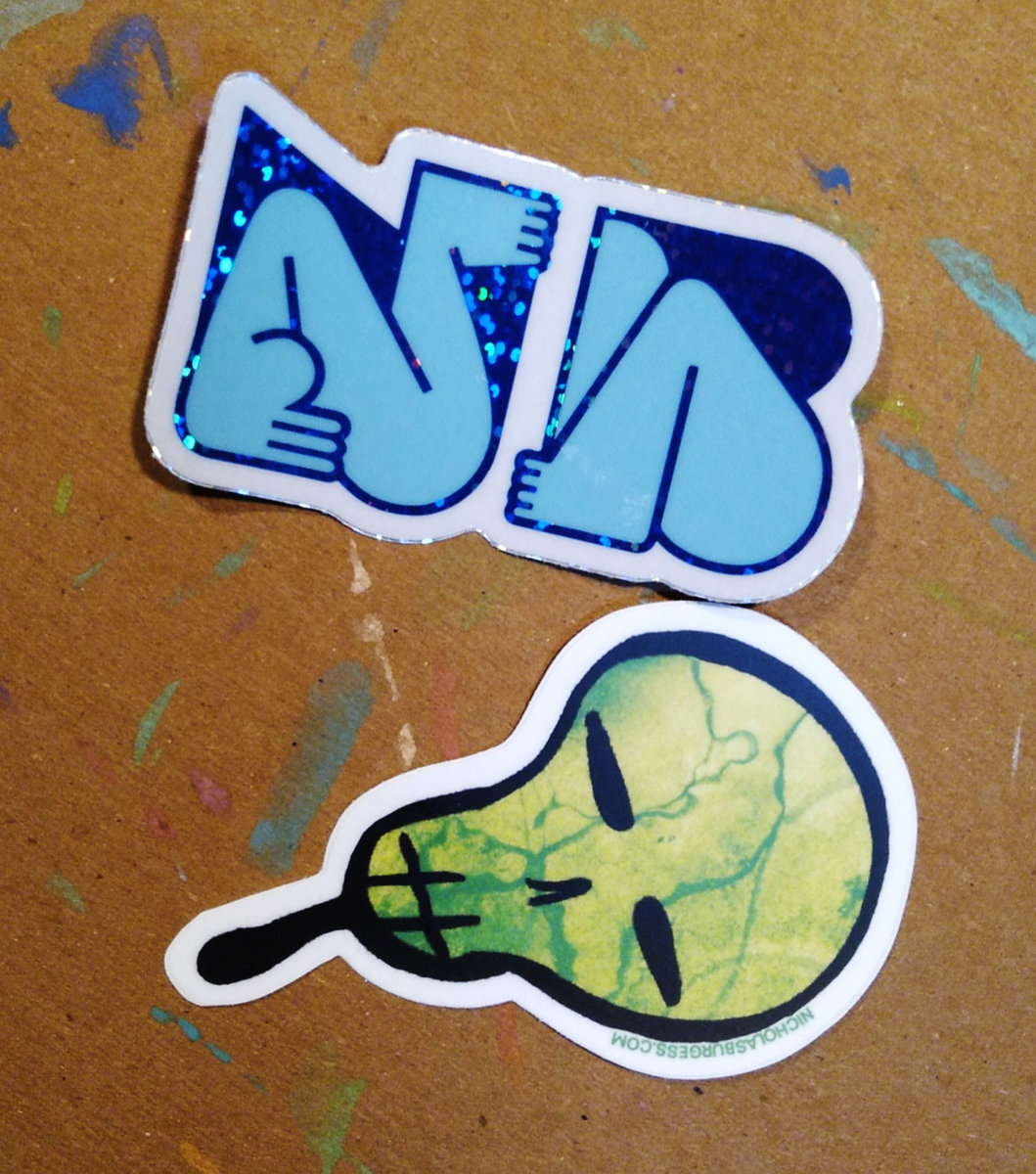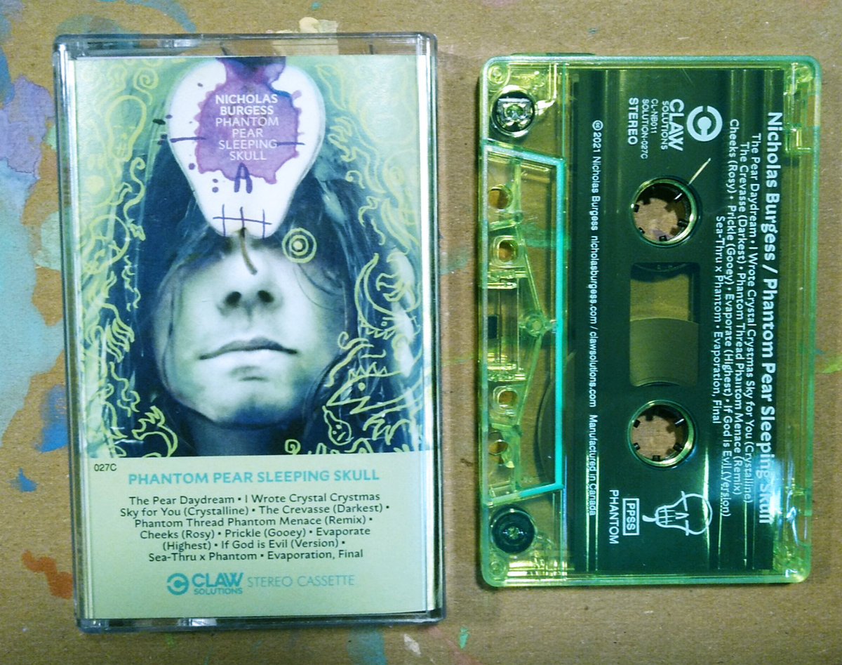 Cassette comes with two stickers: a skull pear, and a glittery NB logo.